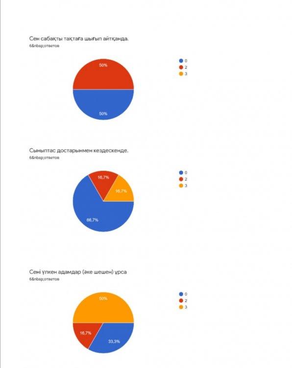 30 апрель 2021 0 1 2 3 4 5 6 "Б" сынып оқушыларына "Мазасыздық шкаласы" әдістемесі жүргізілді. Мақсаты: оқушы бойындағы мазасыздықтың басым түрін анықтау.