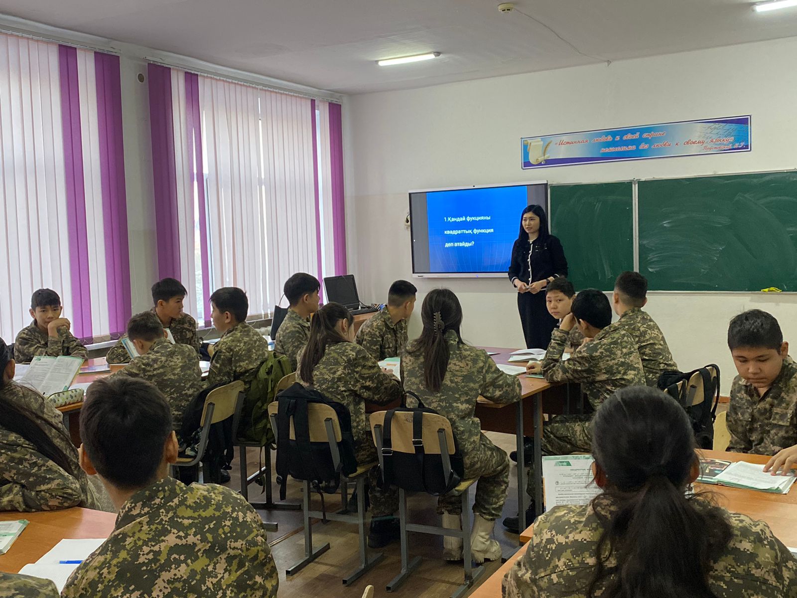 "Баршаға әрі жекеге арналған мектеп" жобасы аясында "Lesson Study" технологиясымен 8 "А" сыныбында алгебра пәнінен зерттеу сабағы өтті. Тақырыбы: «Квадраттық функция және оның графигі». Мақсаты: квадраттық функцияның дербес түрлерін қайталау және белгілі графиктердің көмегімен квадраттық функцияның графиктерін салудағы оқушылардың білімдерін бекіту. Оқушылар “Мозайка ” әдісі арқылы 4 топқа бөлінді. “Мен досыма сенемін” әдісі арқылы үй тапсырмасы тексерілді .“Сәттілік фортунасы” арқылы өткен тақырыпқа шолу жасалды. Топтық, жеке жұмыстар жүргізілді. ҚБ тапсырмасы тест түрінде жүргізілді. Wordwall қосымшасы арқылы сабақ бекітілді. Өзін - өзі бағалау жасалды. Зерттеу тобындағы мұғалімдер сабақта қолданылған әдіс-тәсілдердің тиімді, тиімсіз жақтарына сараптама жасап, 2-айналым сабақтарын қорытындылады. Пән мұғалімі: А.А.Рахметжанова.