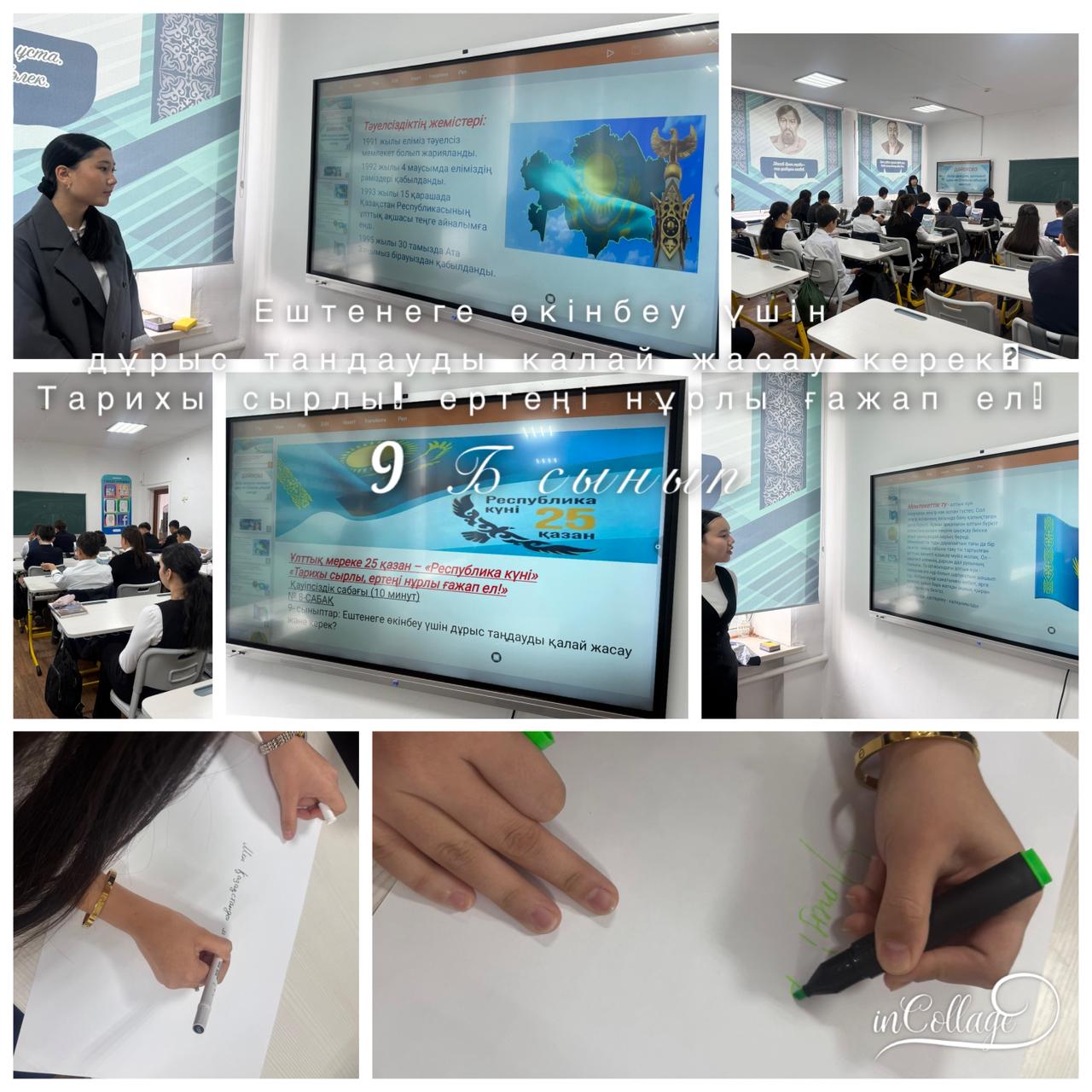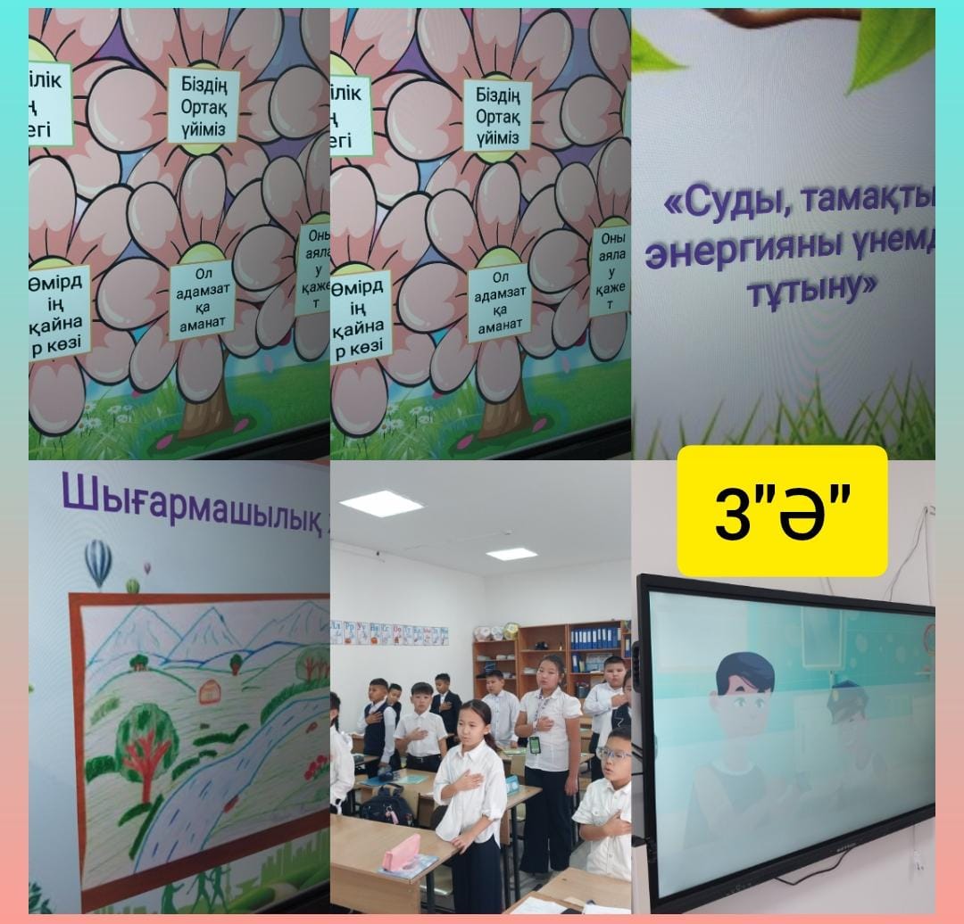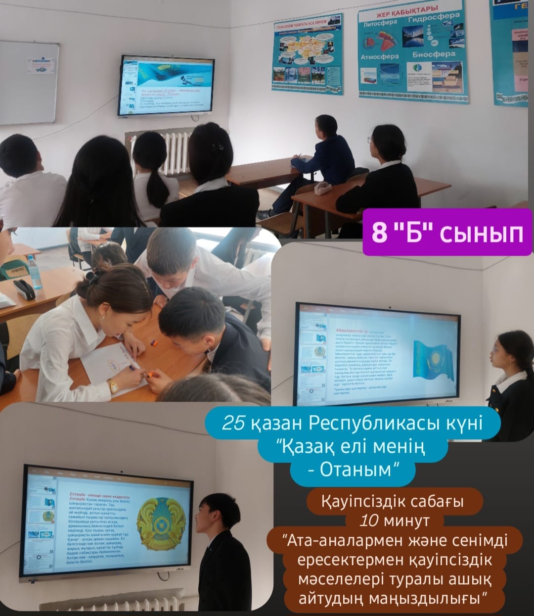 Сынып сағаттары барысында оқушылар Қазақстанның тарихы мен жетістіктері жайлы әнгімелеп, туған жер туралы өлеңдер оқып,