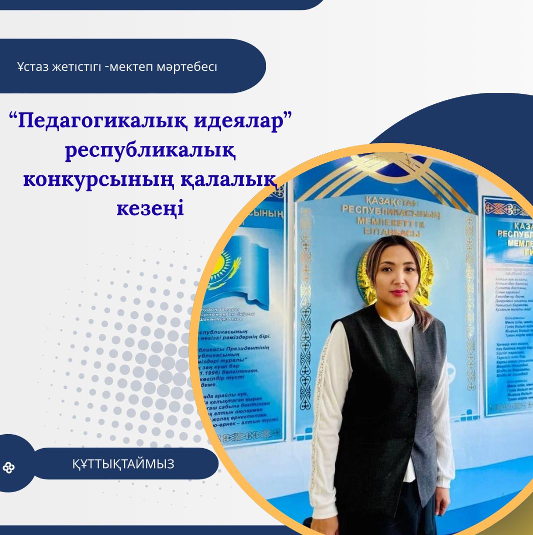 "Педагогикалық идеялар фестивалі" республикалық конкурсының қалалық кезеңінде "Шығармашыл толқын" бағыты бойынша бастауыш сынып мұғалімі Кутешова Жадыра Серікқалиқызы, информатика пәні мұғалімі Камбарова Альфия Куандыковна, көркем еңбек пәні мұғалімі Каттебева Кундыз ІІІ орындарды иеленді."Психолог сандықшасы" бағыты бойынша Рамьянова Анар Мауытхановна ІІІ орын, «Сабақ аяқталған соң..... » бағыты бойынша Нугуспанова Шынар Туленовна жүлделі ІІ орын алды. Әріптестерімізді құттықтап, шығармашылық табыс, жаңа белестер мен жетістіктер тілейміз!