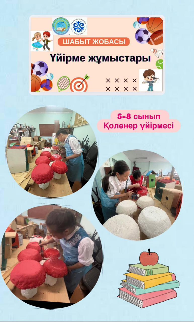 Шабыт жобасы аясында мектебімізде күнделікті үйірмелер қарқынды түрде жұмыс жасауда. 4 “Б” сыныбында дойбы үйірмесі өткізіліп, оқушылар логикалық ойлау мен шапшаң шешім қабылдау дағдыларын дамытып жүр. Ал 5–8 сыныптар арасында өтетін қолөнер үйірмесінде балалар шығармашылық қабілеттерін ашып, жаңа идеяларды іске асыруда. Үйірме жұмыстарына оқушылар белсенді қатысып, өз таланттарын дамытуға үлкен мүмкіндік алуда.