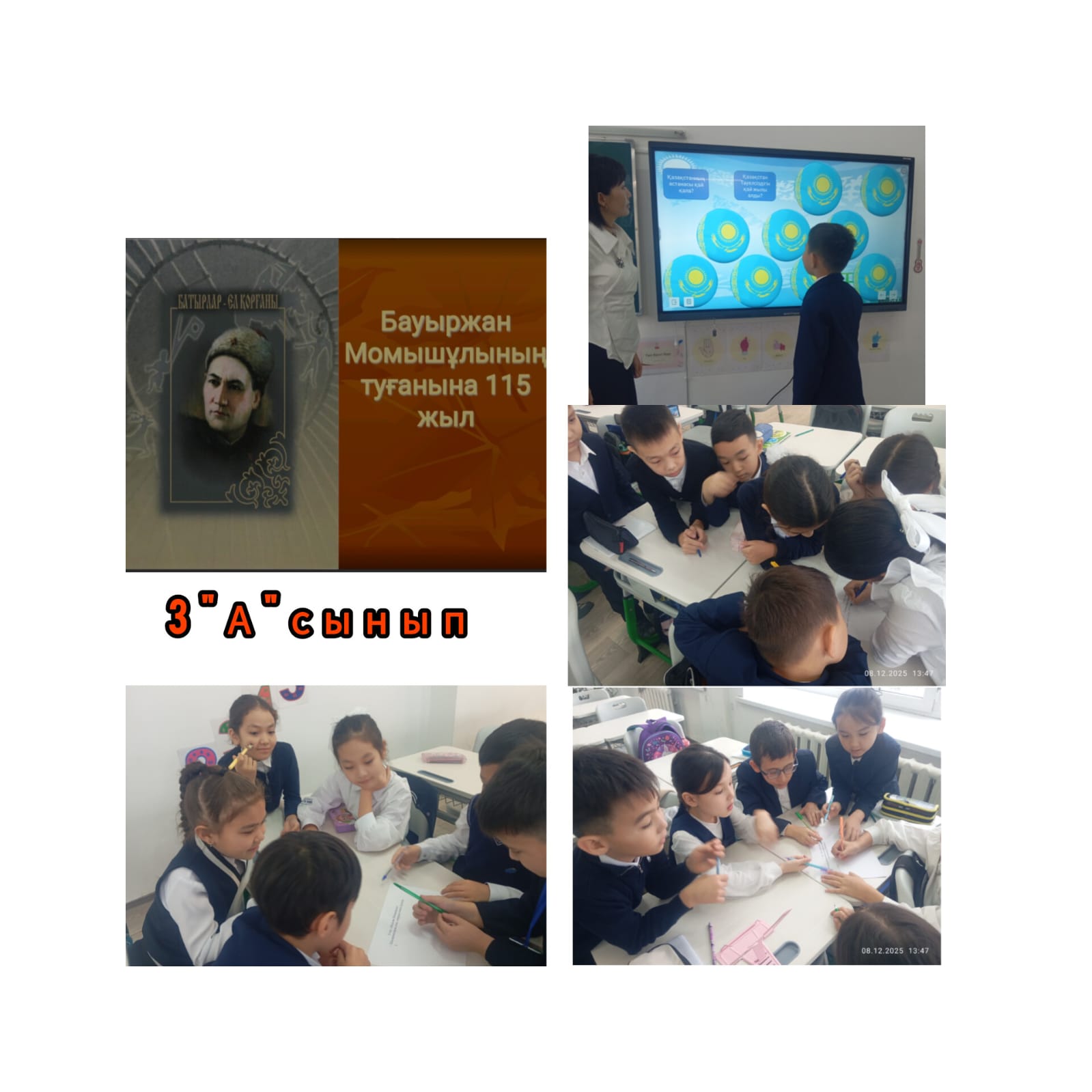 «Адал азамат» біртұтас тәрбие бағдарламасы аясында, желтоқсан айының жоспарына сәйкес, мектебімізде даңқты қолбасшы, Кеңес Одағының Батыры, қазақ халқының қайсар перзенті Бауыржан Момышұлының туғанына 115 жыл толуына орай 1–11 сынып оқушылары арасында мазмұнды тәрбие сағаттары және 10 минуттық қауіпсіздік сағаттары ұйымдастырылды. Бұл іс-шаралар жас ұрпақты ерлікке, батылдыққа, отансүйгіштікке баулуды мақсат етті.