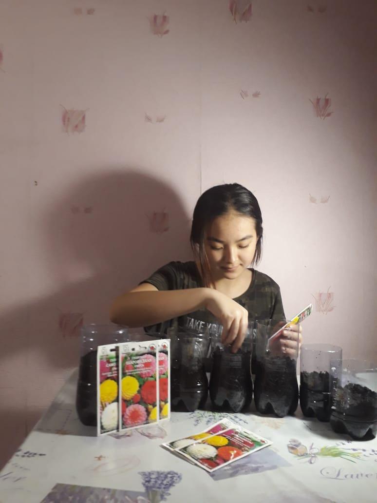 Көктем басталды, көктемгі көгалдандыру жұмыстары туралы ойланатын кез келді. Сіз әртүрлі тәсілдермен көшеттер отырғыза аласыз.Біз көкөністер мен гүлдерді көктемде отырғызамыз, ал қыста үйіміздің немесе пәтеріміздің терезесінің алдында өсіреміз . Дайын контейнерлерді сатып алуға ақша жұмсамау үшін, сіз өз қолыңызбен көшеттерге қорап жасай аласыз.Бөтелкелерден жасалған ыдыста көшеттерді өсіру артықшылық береді. Ол үшін көктемгі демалыста біз сыныптағы әр оқушыға уйде терезе алдында гүл көшеттерін өсіруге онлайн тапсырма бердік. Оқушылар мен олардың ата-аналары гүл өсіру процесіне белсенді қатысуда. Қазіргі уақытта мектепте 34 сынып бар, оларда 818 бала оқиды. Біздің бастамамызды 616 ата-ана қолдады. Енді олар ұйымдастыру комитетіне фотоесептер жіберуде. Отырғызылғандар: астралар, петуниялар , біржылдық георгинялар, бархыттар т.б. Мамырдың жылы күндерінде балалар мектепке гүл көшеттерімен келеді деп ойлаймыз, жұмыс жалғасуда.