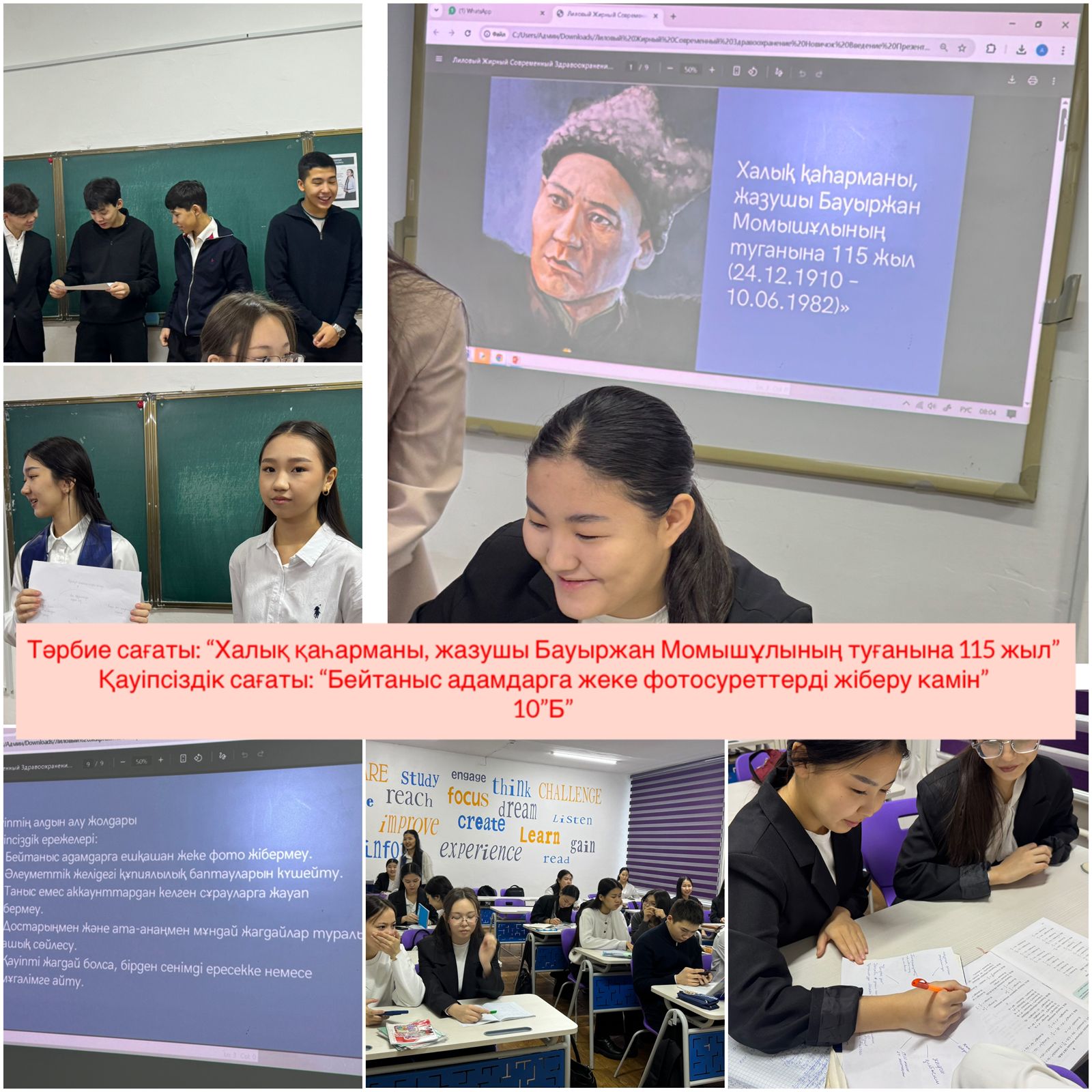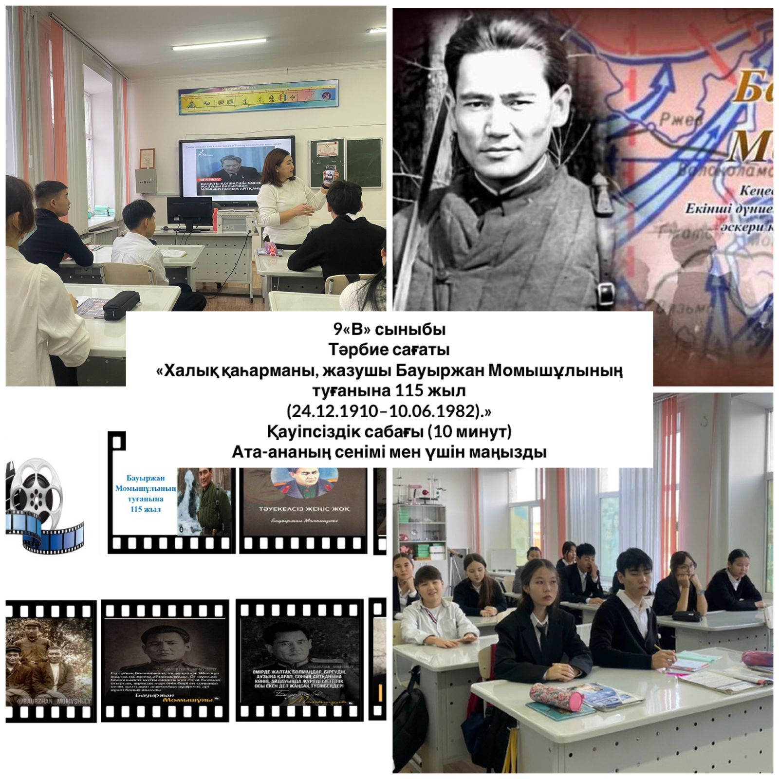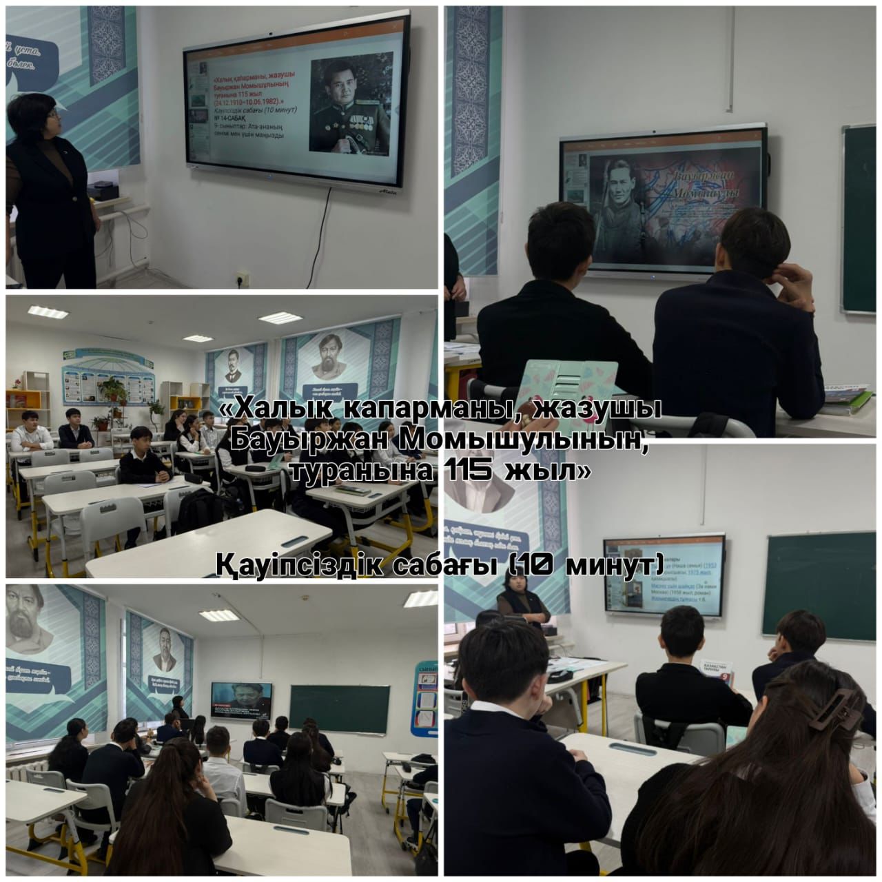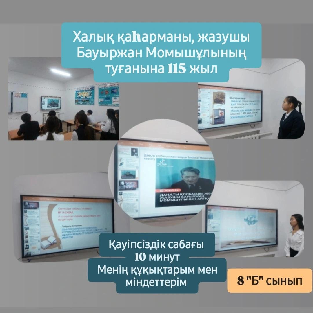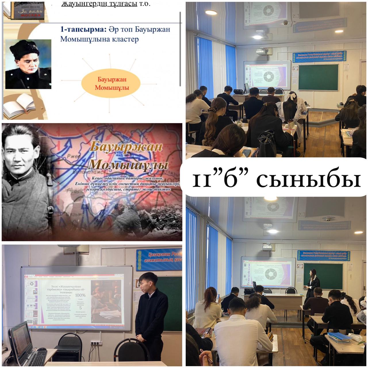 Тәрбие сағаттары барысында оқушылар Бауыржан Момышұлының өмір жолы, Ұлы Отан соғысындағы ерлігі, әскери тәртіп пен ұлт алдындағы жауапкершілік туралы кеңінен мағлұмат алды. Әр сынып деңгейіне сәйкес дайындалған көрнекіліктер, бейнематериалдар, деректі әңгімелер мен ұстаздардың түсіндірулері оқушылардың қызығушылығын оятып, тарихи тұлғаның қайсар мінезін тереңірек тануға мүмкіндік берді. Сондай-ақ, іс-шара аясында өткізілген 10 минуттық қауіпсіздік сағаттары оқушыларды тәртіпке, төтенше жағдайларда дұрыс әрекет етуге, жауапкершілік сезімін қалыптастыруға бағытталды. Батырдың «тәртіп – ел қорғаны» деген ұстанымы негізге алына отырып, оқушыларға мектеп ішіндегі, көшедегі, интернет кеңістігіндегі қауіпсіздік ережелері түсіндірілді.