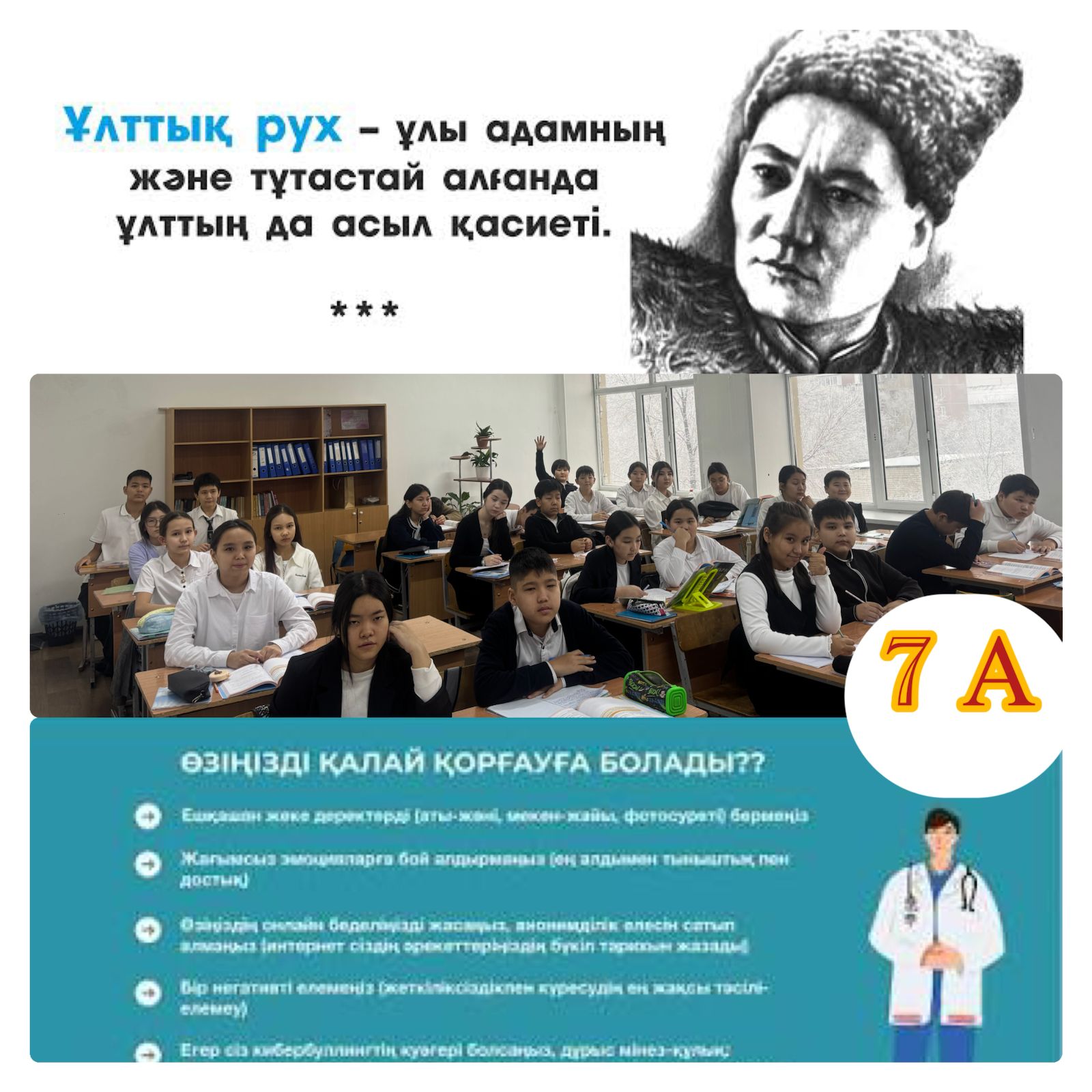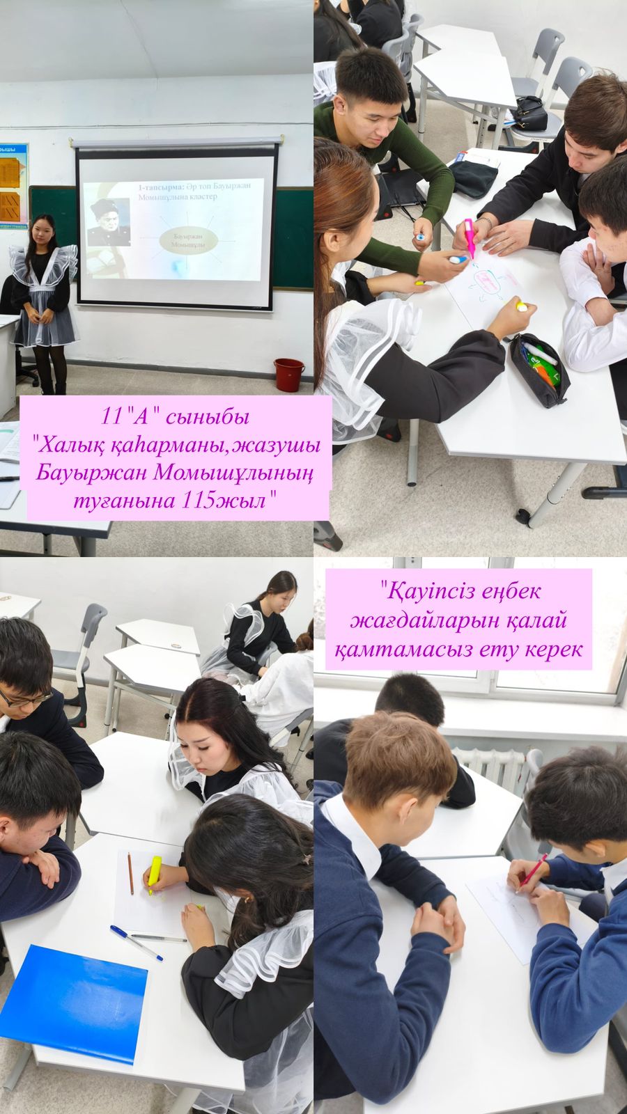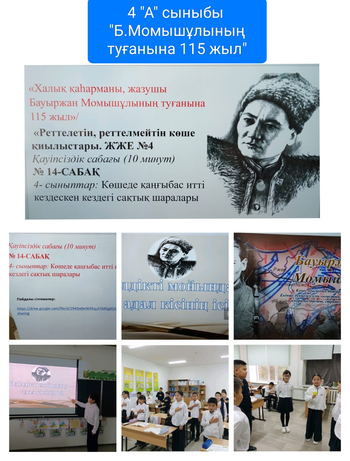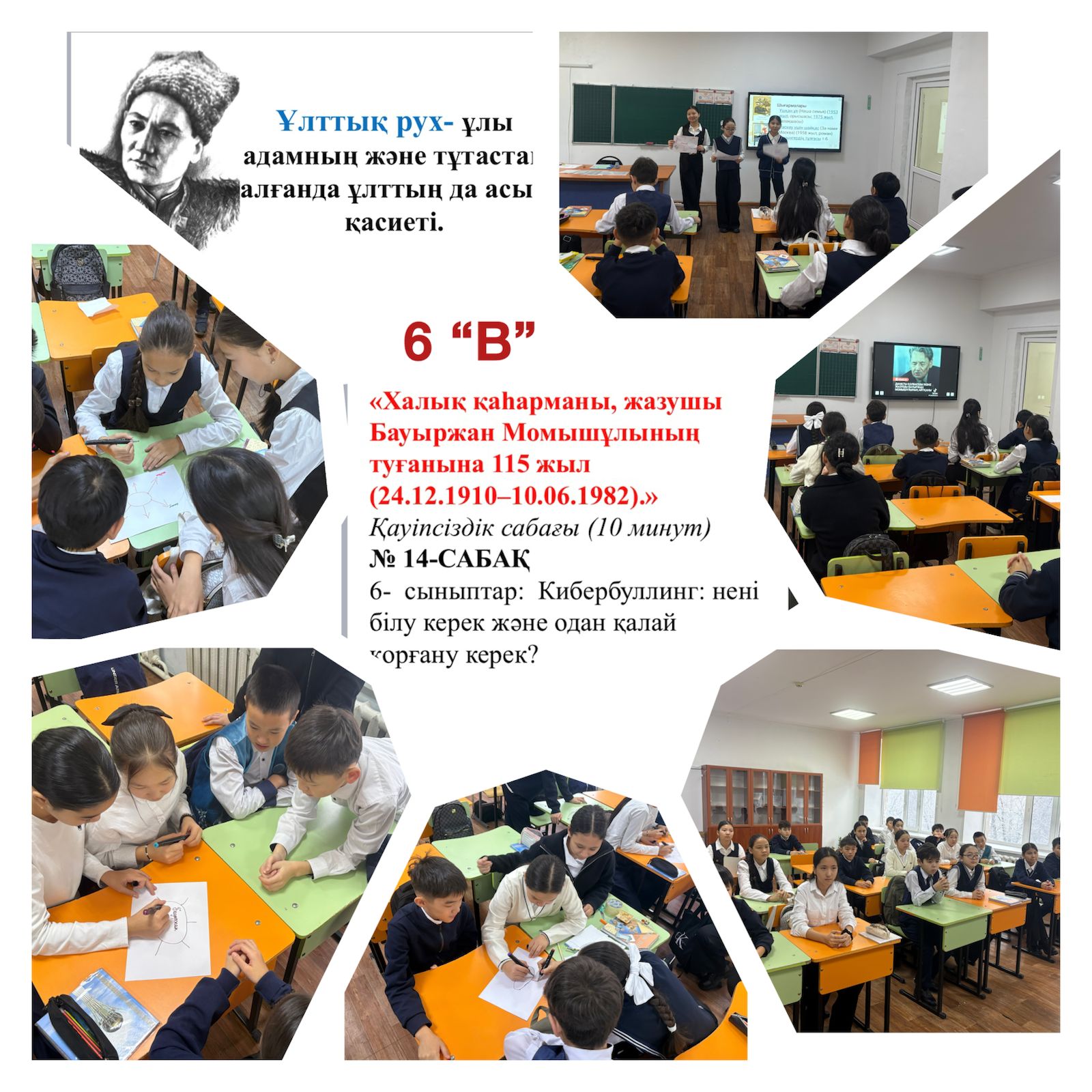 Тәрбие сағаттары барысында оқушылар Бауыржан Момышұлының өмір жолы, Ұлы Отан соғысындағы ерлігі, әскери тәртіп пен ұлт алдындағы жауапкершілік туралы кеңінен мағлұмат алды. Әр сынып деңгейіне сәйкес дайындалған көрнекіліктер, бейнематериалдар, деректі әңгімелер мен ұстаздардың түсіндірулері оқушылардың қызығушылығын оятып, тарихи тұлғаның қайсар мінезін тереңірек тануға мүмкіндік берді. Сондай-ақ, іс-шара аясында өткізілген 10 минуттық қауіпсіздік сағаттары оқушыларды тәртіпке, төтенше жағдайларда дұрыс әрекет етуге, жауапкершілік сезімін қалыптастыруға бағытталды. Батырдың «тәртіп – ел қорғаны» деген ұстанымы негізге алына отырып, оқушыларға мектеп ішіндегі, көшедегі, интернет кеңістігіндегі қауіпсіздік ережелері түсіндірілді.